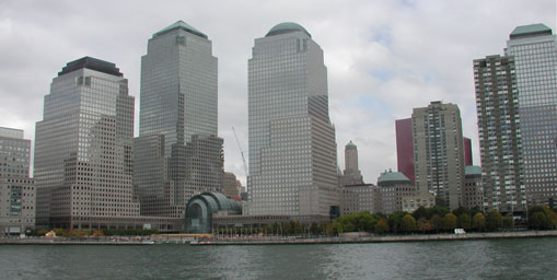 Larry got us a free ride on a river boat tour, the highlight of which was passing the ruins of the Twin Towers.