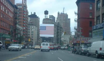 Unashamedly nearly all the passengers moved to one side of the boat to get a better view. I was reminded of the Francis Bacon painting "figures at the base of a crucifixion". New York and possibly many other parts of America feels under threat right now. From this has risen a camaraderie and patriotism, so everywhere you go there's flags. From house windows, head scarves and flying from miniature flag poles sticking out of car doors. Along every road are roadside search check points staffed by NYPD officers, US Marshals, and regular soldiers. Having seen such checkpoints elsewhere I could see a difference especially in comparison to Israel. In New York people appeared happy to oblige and in return there were smiles and other friendly gestures between officials and public. In Israel I had sensed the feeling that at any moment a gun battle would take place, so it was best to move slowly and do exactly what was being asked of me,
